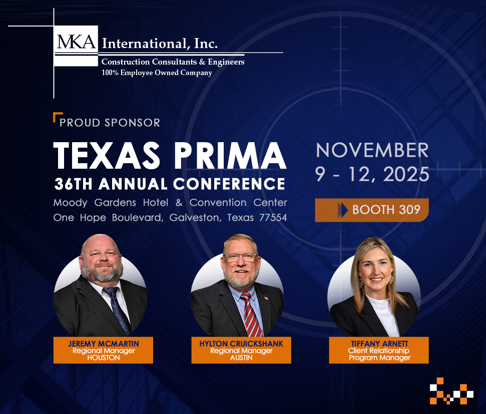 MKA International, Inc. is proud to sponsor and attend the 36th Annual Texas PRIMA Conference from November 9 - 12, 2025 in Galveston, Texas. We will be at Booth #309. This year’s theme is “Mission Possible: Agents of Change.” As a Silver sponsor, we proudly support PRIMA’s educational programming and scholarship opportunities. In attendance will be Regional Manager of MKA Houston Jeremy McMartin, Regional Manager of MKA Austin Hylton Cruickshank,…